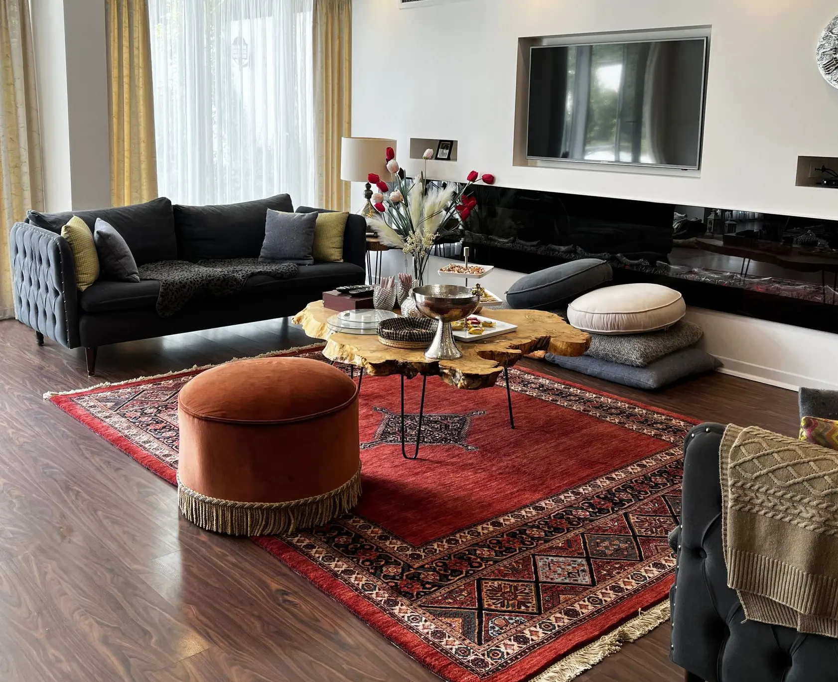چند فرش را برای پرو، به ویلایشان بردیم؛ ویلایی سه طبقه که برای او و خانوادهاش، جایی برای فرار از شلوغیهای روزمرهی تهران شده است. برای هر طبقهاش، فرشی پسندیدند و ویلایشان را دوباره براساس آنها طراحی کردند؛