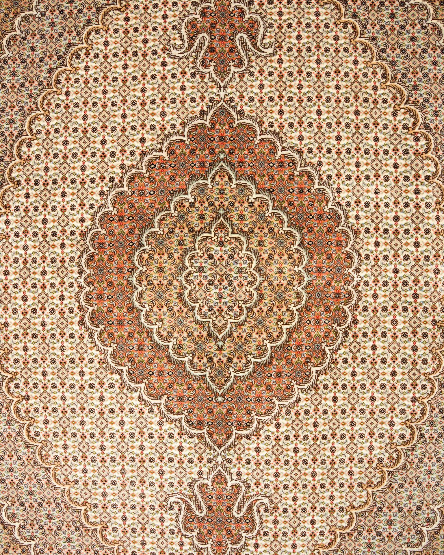 ۲. کیفیت بافت: فرشهای تبریز به دقت و ظرافت در بافت مشهور هستند. بافندگان تبریزی از گرههای ظریف و ریز استفاده میکنند که موجب بالا رفتن تراکم و کیفیت فرش میشود.