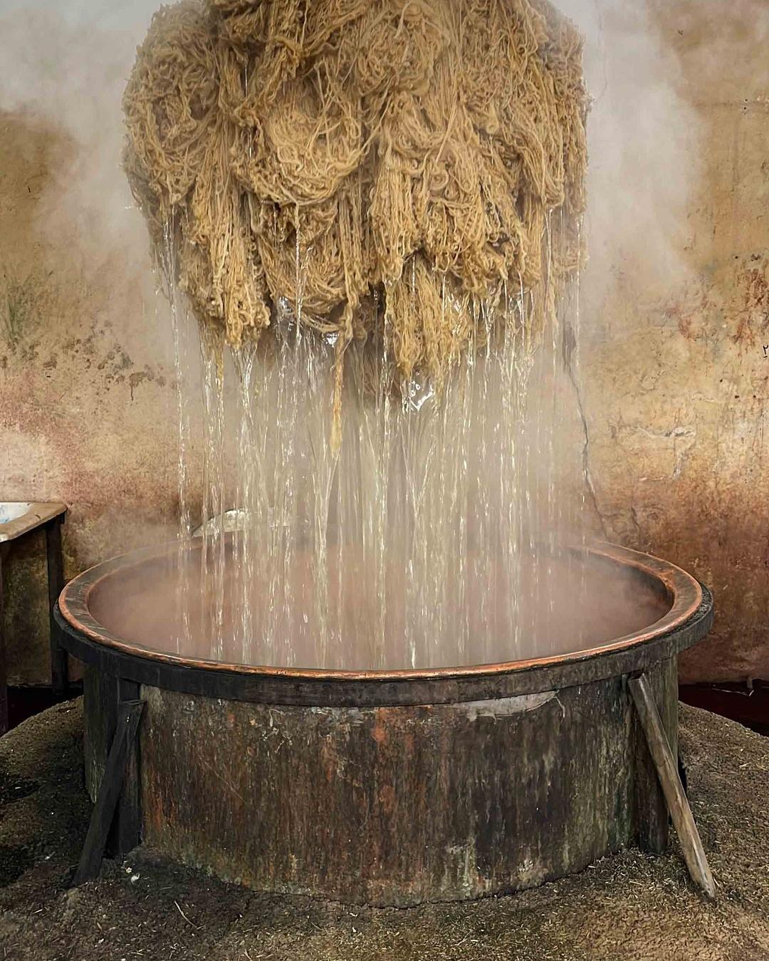 آنچه پیش از بافت رخ میدهد، حاشیهٔ کار و مقدمهچینی نیست؛ خودِ امکانِ کار و به معنای تام و تمام زمینهچینی است. پشمچینی، شستن، ریسیدن و رنگرزی؛ برپا کردن دار و چلهکشی، هر کدام آییناند، نه مقدمه. همانطور که در منطق اسطورهای و فرهنگی، پیش از پیوندِ زناشویی، پیمانی آیینی جاری میشود. این آیین نه صرفاً تشریفاتی و تزیینی، که برای امکان زایش است؛ برای آنکه ماده بداند قرار است معنا را تاب بیاورد. بافت از همین لحظه آغاز میشود: از جایی که هنوز گرهای زده نشده، اما زمین آمادهٔ پذیرش است.